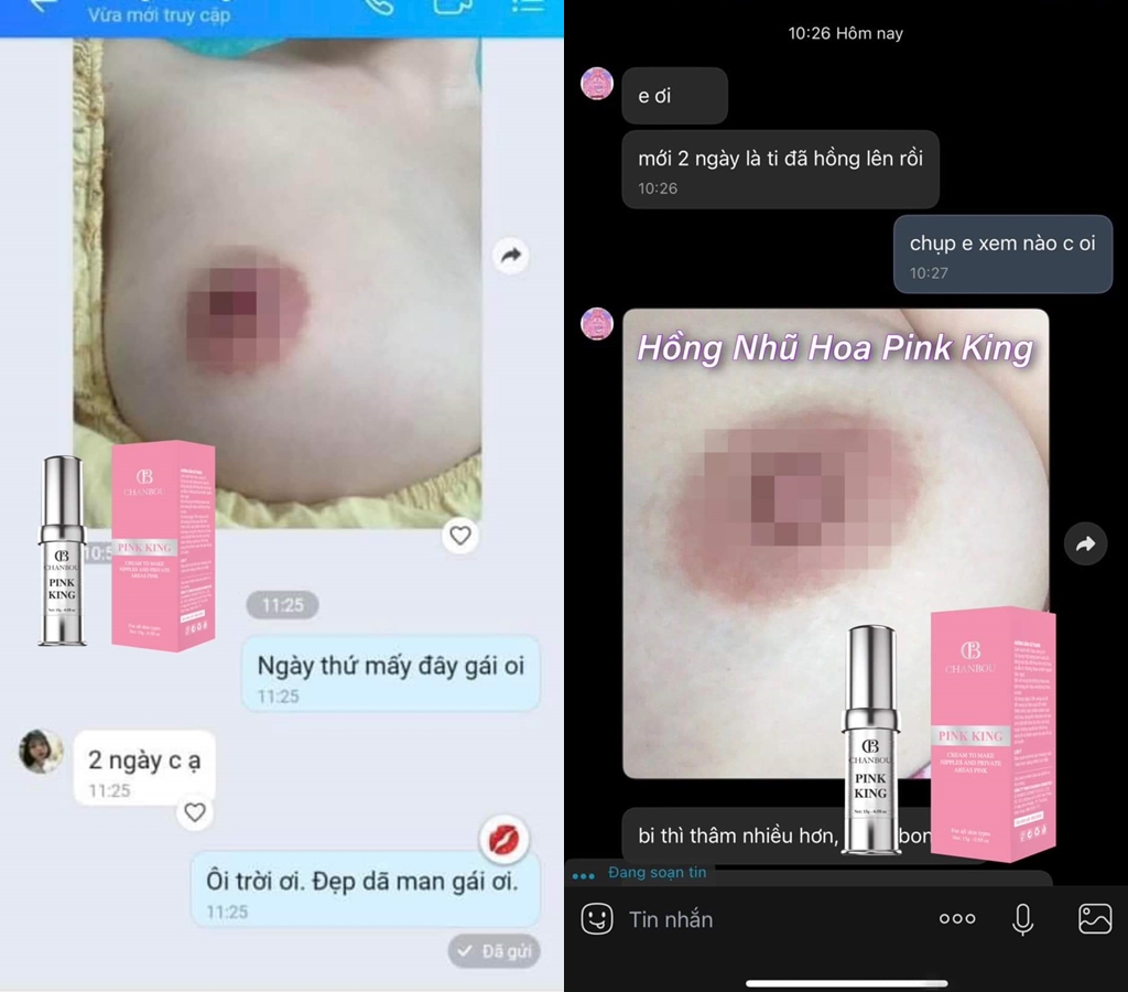 Kem làm hồng nhũ hoa Pink King Chanbou nhận về liên tiếp những phản hồi vỡ hòa hạnh phúc của các nàng. Thật tuyệt vời khi Pink King Chanbou đã giúp nàng tự tin và thêm yêu chính cơ thể của mình. Có những chị em thấy rõ hiệu quả hồng nhũ hoa chỉ sau 2 ngày sử dụng. Tùy vào tình trạng thâm đen và cơ địa, thời gian nhũ hoa hồng lên có thể khác nhau, nhưng hầu hết đều trong 5-7 ngày là thấy sự thay đổi.