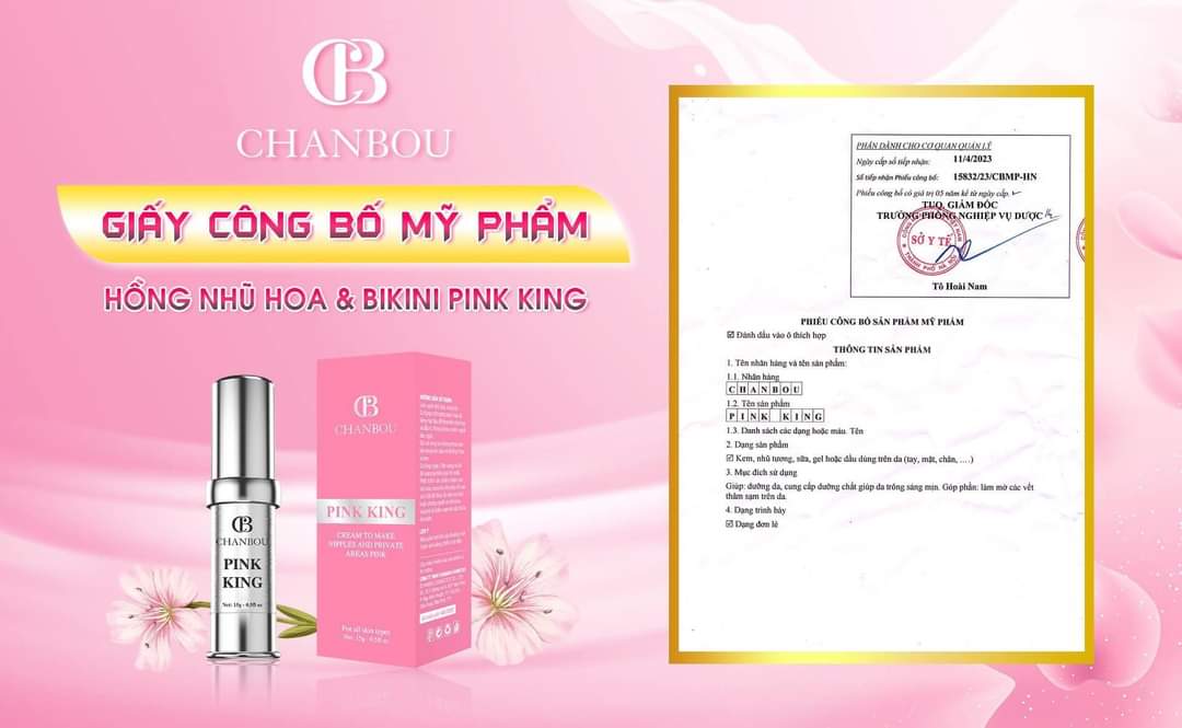 Pink King Chanbou là một “siêu phẩm” mới đến từ Công ty TNHH Mỹ phẩm Thanh Trang. Sản phẩm chuyên về làm hồng nhũ hoa, làm hồng vùng kín với những tác dụng nổi bật: