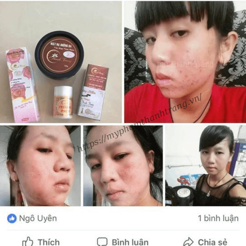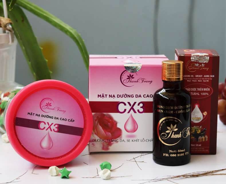 Bộ đôi trị mụn tái tạo da và mặt nạ hoa hồng: Trị mụn bằng Dung dịch Mụn - Nám Thanh Trang nên kết hợp với Mặt nạ dưỡng da Hoa Hồng, hoặc kết hợp với Mặt nạ dưỡng da cao cấp CX3. Bạn sẽ làm sạch da bằng bột mặt nạ trước khi thoa dung dịch tái tạo. Điều này giúp cho tinh chất thẩm thấu tốt hơn.
