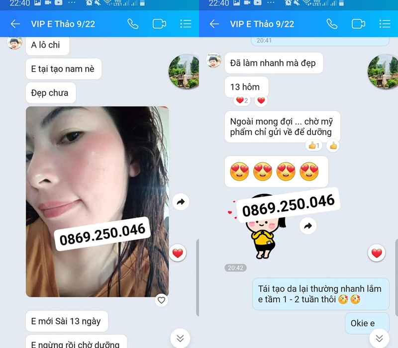 Một feeback khác của khách sử dụng tái tạo da Thanh Trang