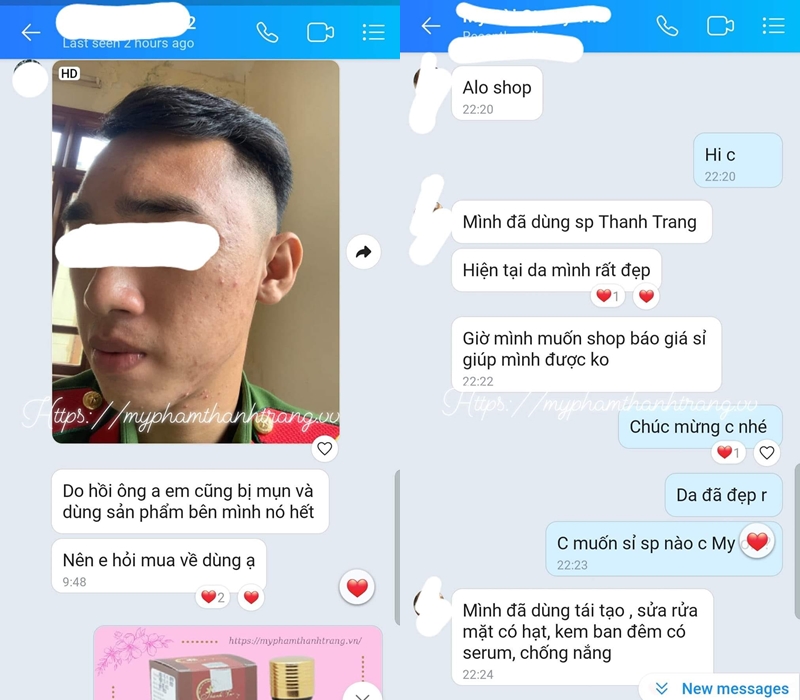 Khách sử dụng đông y tái tạo da Thanh Trang và rất thích cách tư vấn, đồng hành tận tình của đại lý bán hàng. Cụ thể, khách phản hồi: shop bán hàng có tâm, hướng dẫn từng bước, cảm ơn shop đã tư vấn nhiệt tình… Nhiều khách trải nghiệm sản phẩm, tin tưởng hoàn toàn và mong muốn mua sỉ số lượng lớn. Rất-rất nhiều đại lý, nhà phân phối của Thanh Trang khởi đầu từ khách hàng.