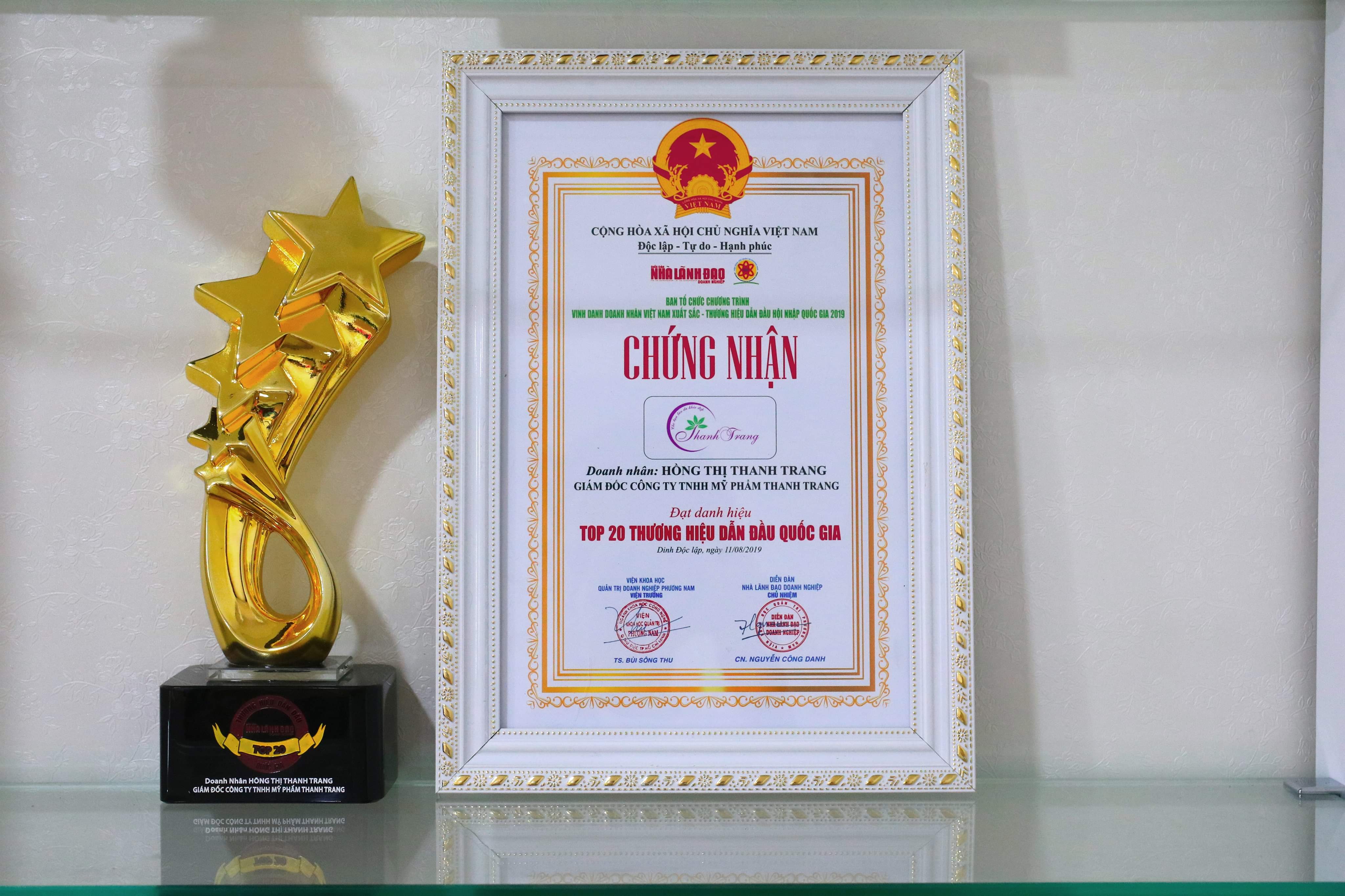 Mỹ phẩm Thanh Trang ra mắt năm 2016. Ngay trong năm đầu tiên, Thanh Trang đã xuất sắc giành giải thưởng TOP 100 Thương hiệu dẫn đầu quốc gia. Tiếp tục đi lên bằng chất lượng sản phẩm, năm 2019 Thanh Trang vinh dự được nhận giải thưởng TOP 20 Thương hiệu dẫn đầu quốc gia. Thanh Trang đã và đang là thương hiệu mỹ phẩm thiên nhiên được tin dùng nhất hiện nay.