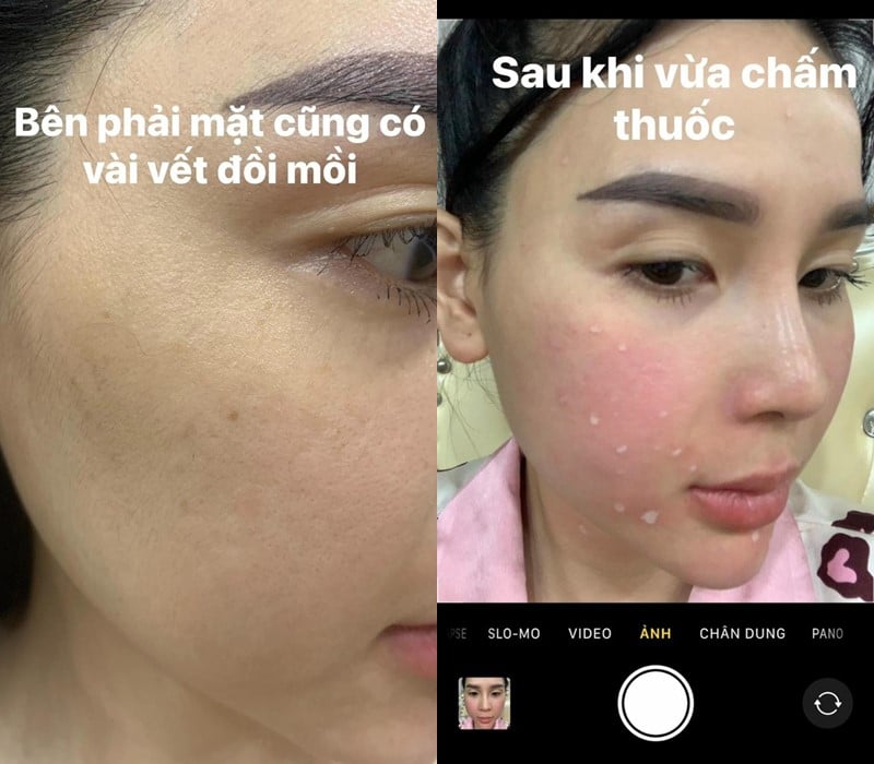 Trường hợp bạn chưa biết cách chấm mà lỡ tay chấm nhiều tinh chất và bị lở loét, hãy rửa mặt bằng nước muối sinh lý mỗi ngày 2 lần. Sau đó uống thuốc kháng viêm hoặc thuốc khô mủ, kết hợp bôi cho vết loét nhanh lành. Các loại thuốc này bạn có thể mua ở hiệu thuốc. Điều trị cho đến khi vết thương đã lành hẳn thì bạn bôi lại tinh chất nám tàn nhang.